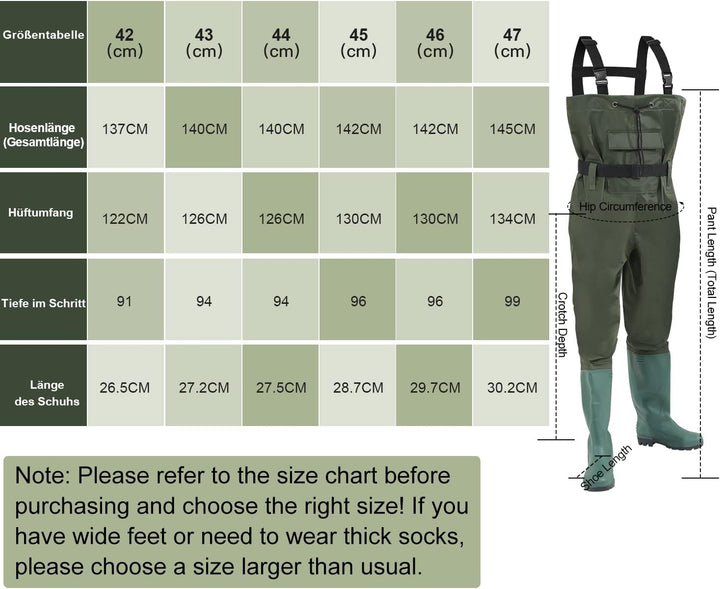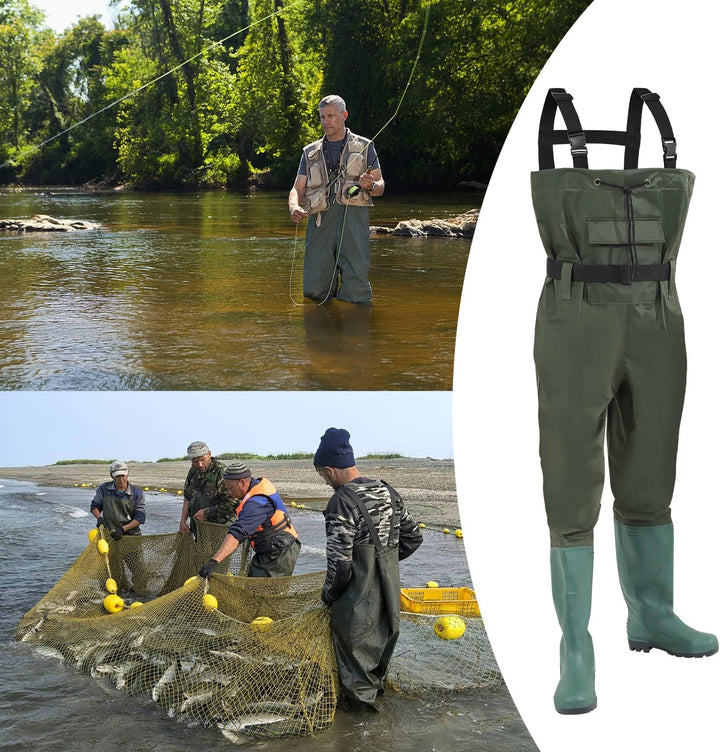 - 【Vielseitig verwendbar】Unsere Wathosen sind geeignet für: Angeln, Jagen, Landwirtschaft, Bergbau, Autowäsche, Teicharbeiten oder Gartenarbeit und jede Tätigkeit an nassen Orten.