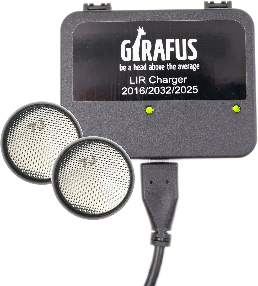 - Ladegerät und Knopfzellen (LiR 2032) inklusive. Mehr Power mit 70mAh pro Knopfzelle. Die Knopfzellen-Akkus haben 3.7 Volt