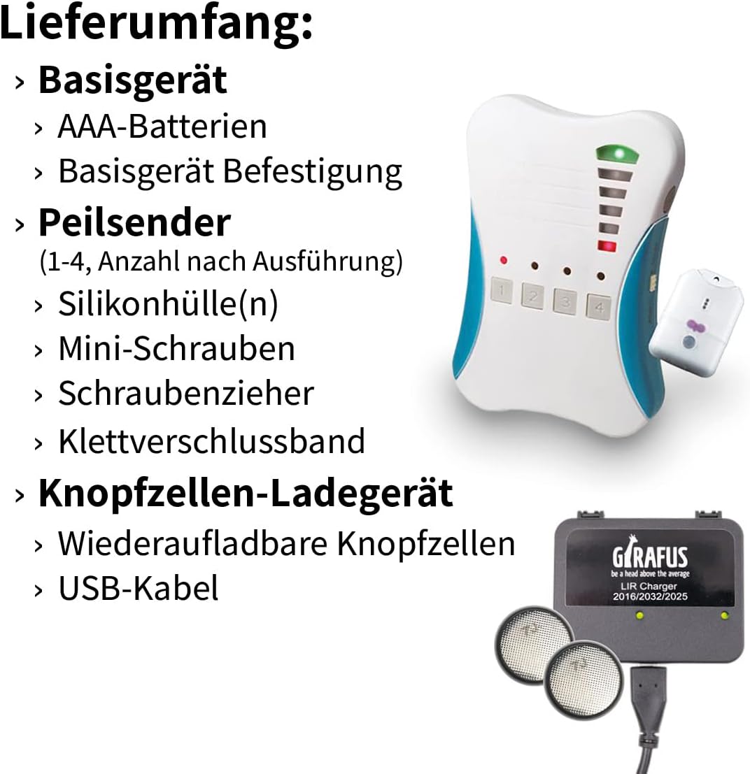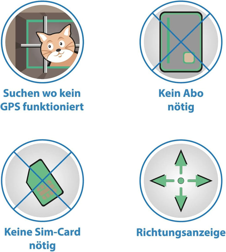 - HILFE BEIM AUFSPÜREN VON BIS ZU 4 VERMISSTEN HAUSTIEREN(ABHÄNGIG VON DER GEKAUFTEN VARIANTE). Richtungsanzeige weist Ihnen die richtige Richtung im Suchareal. LEDs und Signaltöne(abschaltbar) geben Ihnen die approximative Entfernung zum Sender an