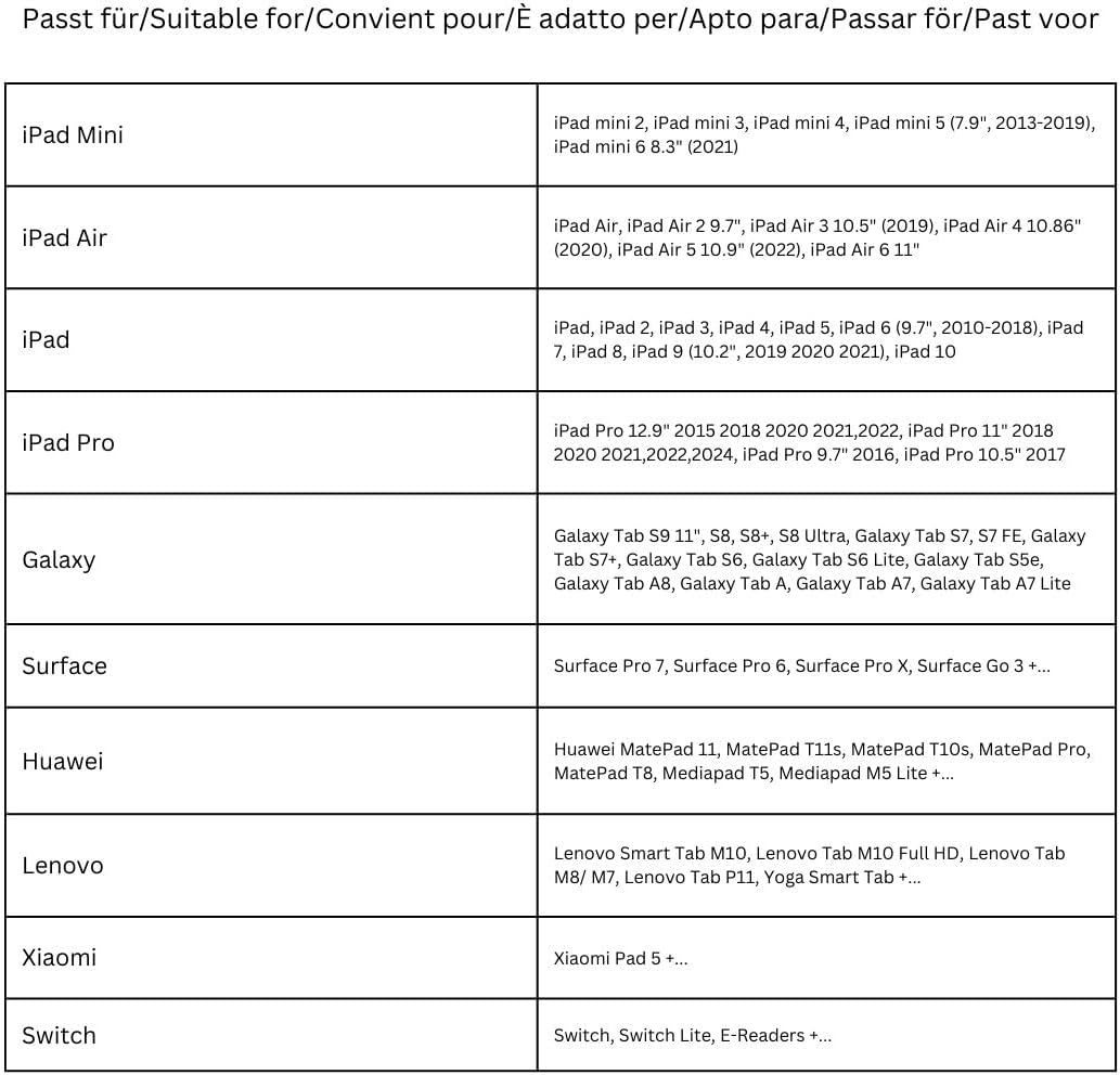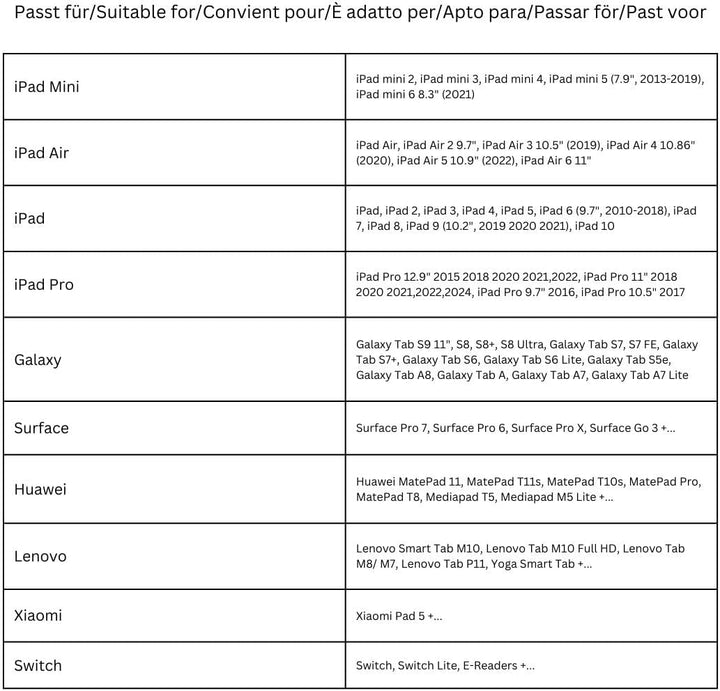 - UNIVERSAL ANWENDUNG: Kompatibel mit Tablets (Grösse von 7-8- 9-10-11 Zoll) wie iPad 1 2 3 4 Air, Samsung Galaxy Tab, Sony, Huawei u.s.w.