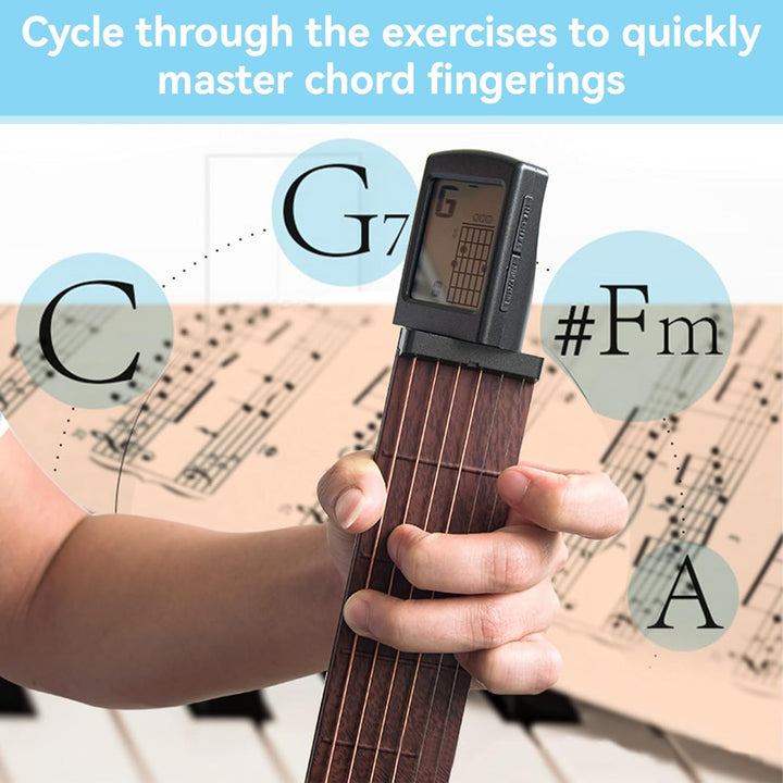 - SMART GUITAR CHORD TRAINER: Ein einfaches und effektives Instrument zum Üben des Gitarrengriffs, mit dem Sie mehr üben und das Muskelgedächtnis schnell verbessern können. Es eignet sich sehr gut zum Üben von Akkorden und Tonleitern, zum Erlangen der