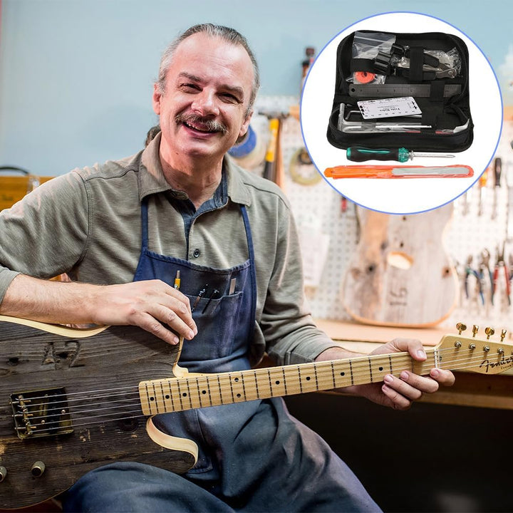 - [Guitar Reparaturswerkzeug Set]: Die handliche Tragetasche dieses kompakten Werkzeug-Sets für Musiker ist besonders praktisch und macht es einfach, das Gitarren Reparatur Pflegeset zu transportieren. Gitarren-Reinigungs- und Pflegeset ist ideal für
