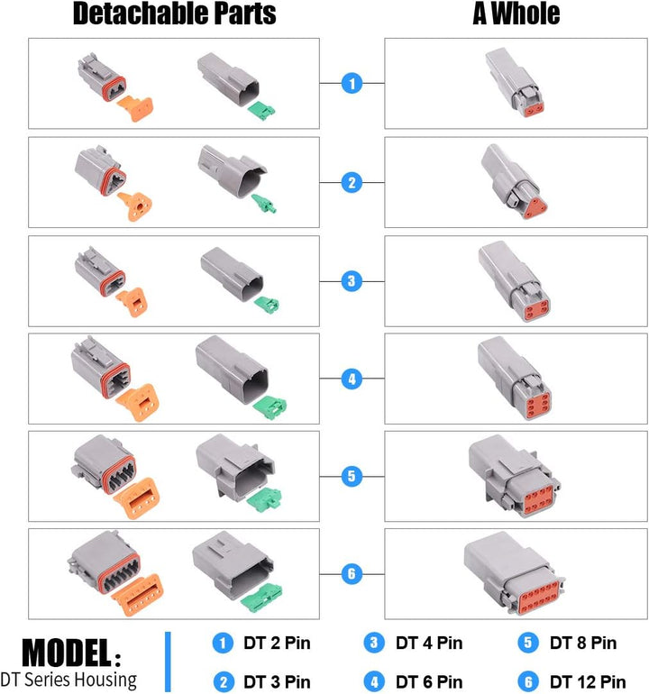 - ★ 【Versiegelte Anschlüsse】: Unsere Anschlüsse der DT-Serie bieten Zuverlässigkeit und robuste Qualität, mit optionaler Flanschmontage, mehrpoligen Anordnungen, niedrigere Kosten und Designflexibilität; wasserdicht und staubdicht, ohne Verlust