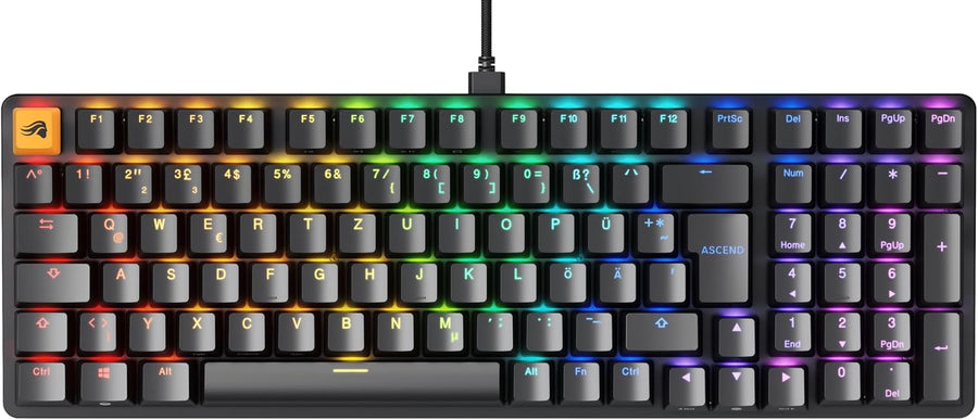 - Farbenfrohe RGB-Beleuchtung und Tastenkappen. Die tastenweise RGB-Beleuchtungsanpassung ermöglicht es Ihnen, die Vorteile der Doubleshot-Tastenkappen aus ABS-Plastik voll auszuschöpfen, wenn Sie Ihre Tastatur genau nach Ihren Vorstellungen gestalten