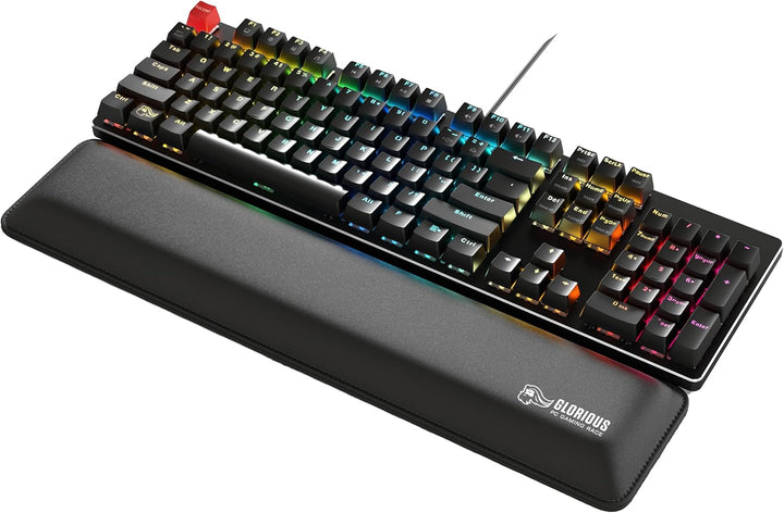 - Glorious Gaming Padded Keyboard Wrist Rest (Full Size, 25 mm stark) - gesteppte Ränder, glatte Stoffoberfläche, rutschfeste Gummibasis, mittlere Festigkeit, 440 x 100 x 25 mm - Schwarz