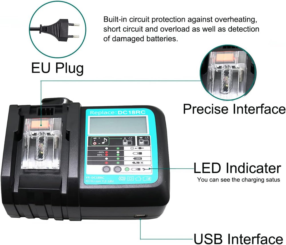 - 【Kompatible Werkzeugmodelle】 für Makita DC18RA DC18RC DC18RD DC18SC DC18SE DC18SD Ladegerät für Elektrowerkzeuge; für Makita DC18RA DC18SC DC1803 DC1804 DC14SA Ladegerät Serie