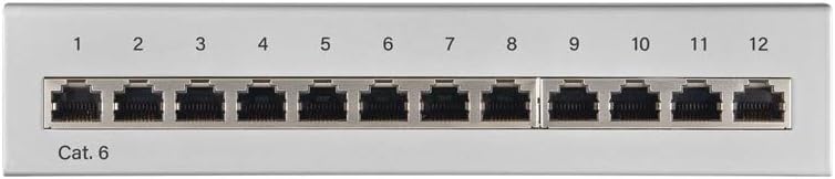 - 12 Port Patchfeld mit RJ45-Buchsen (8P8C) für konfektionierte CAT 6 Netzwerkkabel; LSA Montage für Kabeldurchmesser bis zu 0,64 mm AWG 22-26; Robustes Metallgehäuse & Easy Open-Funktion