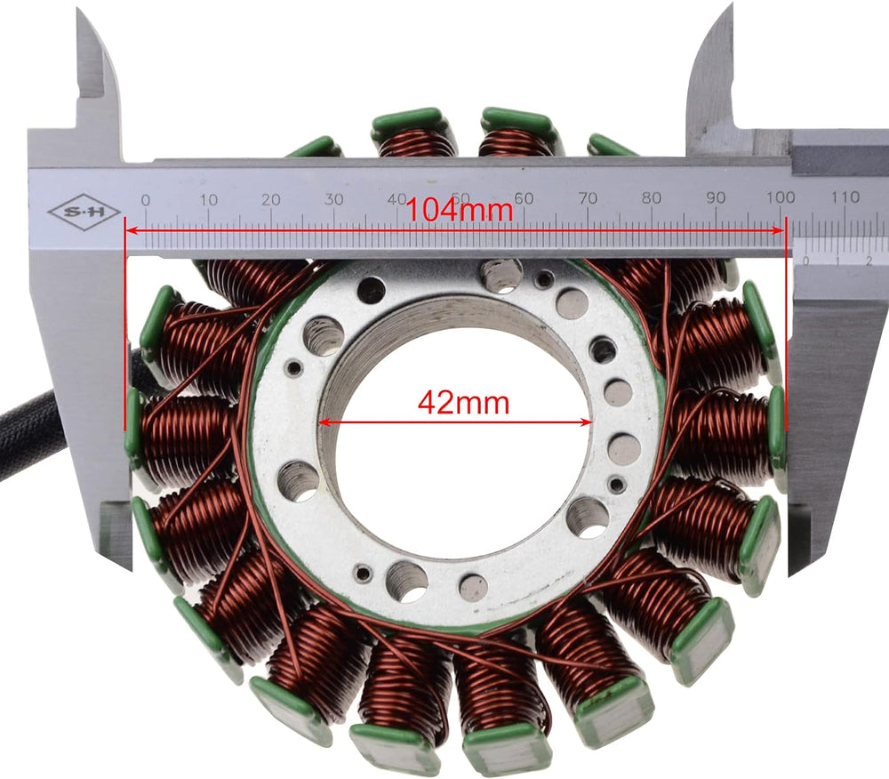 - 1: Grösse: 18 Spule; Aussendurchmesser der Statorspule: 104 mm Innendurchmesser: 42 mm (Detaillierte Messdaten, bitte Bild sorgfältig prüfen)
