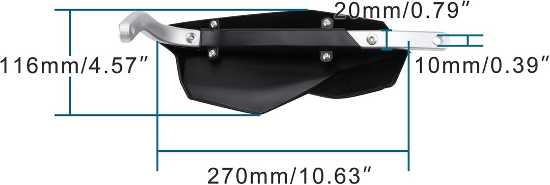 - 1: Standard Lenkerhandschutz Abstand zwischen den Löchern der Ohren: links 28 mm und rechts 22 mm