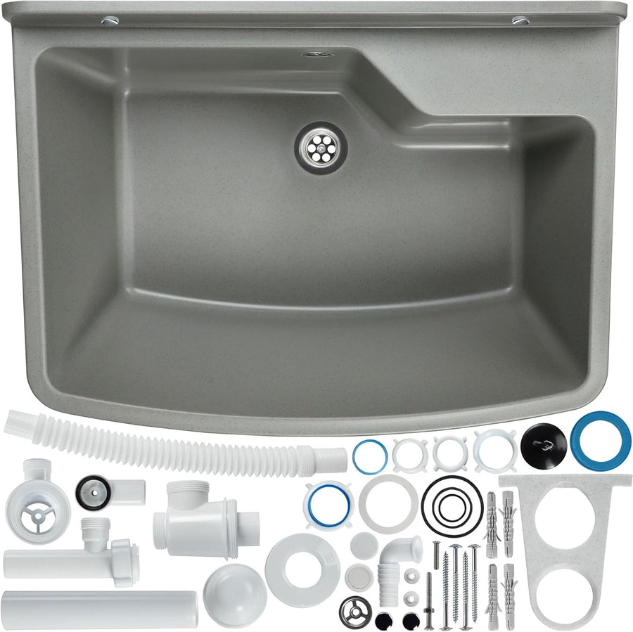 - ☑️ DAS PRODUKT VERFÜGT ÜBER EINE STÜTZE, die das Spülbecken absichert sowie notwendige Dübel, Schrauben, Blenden und eine Gebrauchsanweisung. Das Spülbecken kann man unterschiedlich anbringen: in die Arbeitslatte in der Waschküche einlassen oder an die Wand in der Garage, im Heizraum oder in der Wäscherei aufhängen. Es bewährt sich in den Räumen als Platz zum Hände waschen nach den Haushaltsarbeiten, zum Wasser Eingiessen in die Blumenkanne oder beim Putzen und Reinigen von diversen Gegenständen.