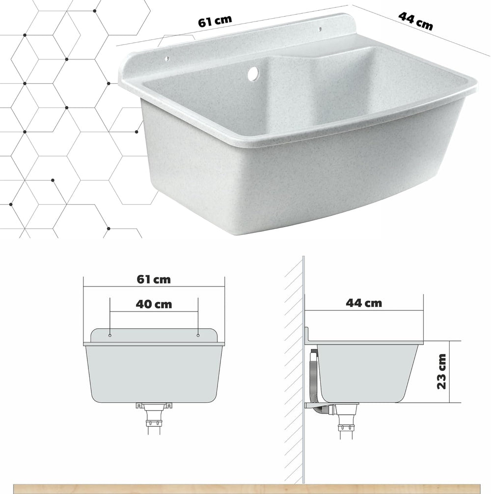 - ☑️ DAS HAUSHALTSSPÜLBECKEN IST 61 cm x 44 cm x 23,5 cm GROss. Im Set befindet sich ein professioneller Siphon, Durchmass 40 cm, der im Gegensatz zu den Rohren, die in den meisten solchen Gegenständen benutzt werden, bessere Qualität und