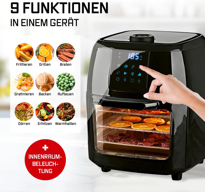 - TOUCH BEDIENUNG - Die Heissluftfritteuse verfügt über eine grosse Digital-Anzeige mit Touch-Display für maximalen Bedienkomfort. Ein praktischer Drehregler lässt Sie ausserdem manuelle Änderungen an Temperatur- und Timereinstellungen vornehmen.