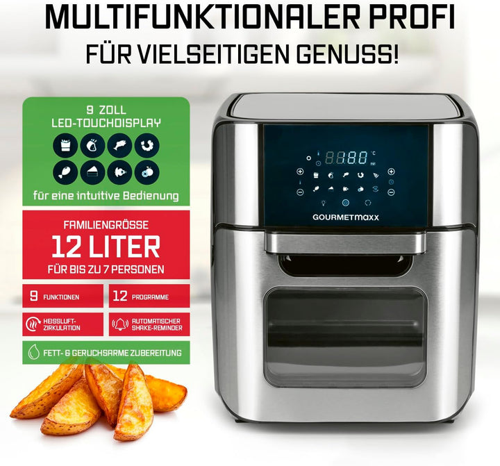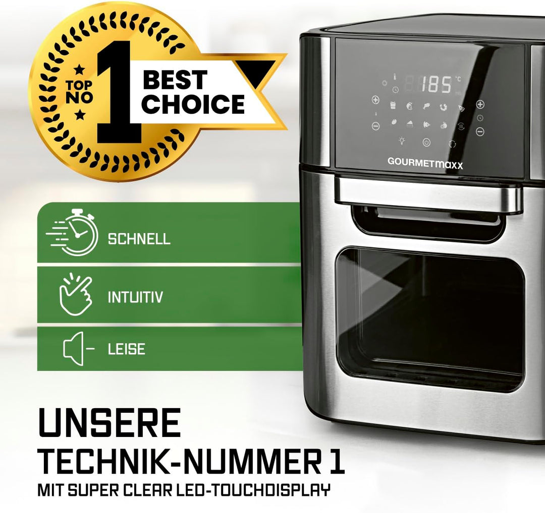 - FRITTEUSE OHNE ÖL - Die GOURMETmaxx Heissluftfritteuse macht es Ihnen möglich besonders fettarm und schonend zu kochen. Sie hält konstant die gewählte Temperatur, sodass jedes Gericht per Timer perfekt und auf den Punkt zubereitet werden kann.
