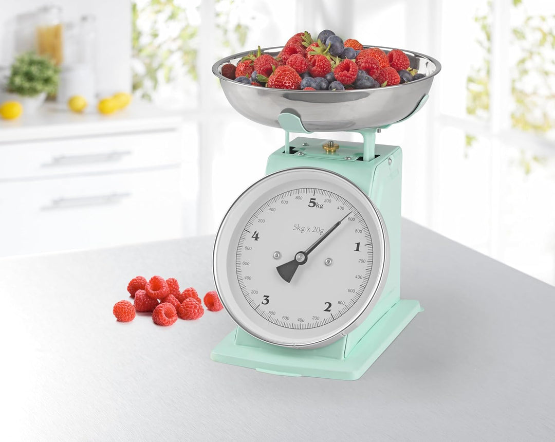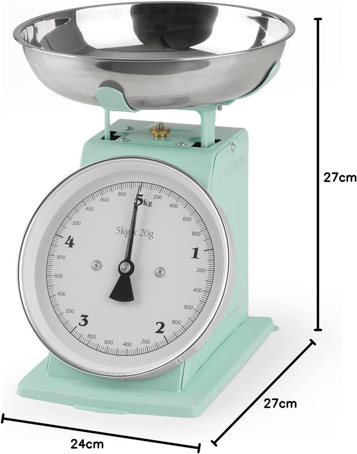 - RETRO DESIGN - Das Retro Design ist nicht nur ein Hingucker, sondern auch sehr praktisch, die abnehmbare Schüssel erleichtert das Wiegen von kleinen Dingen, wie Früchten oder Mehl