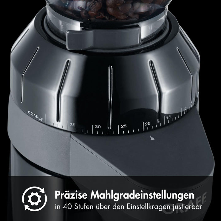 - 40 Mahlgradeinstellungen für unterschiedliche Zubereitungsarten (Espresso, Filterkaffee, French Press etc.)