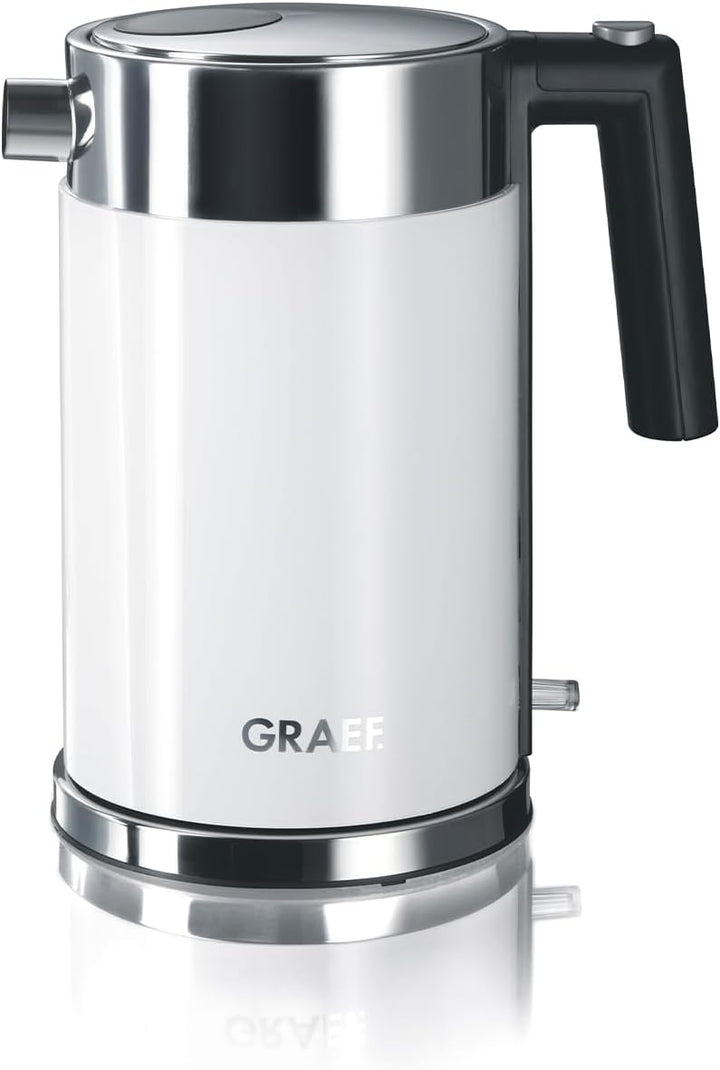 - Der Graef 1,5 Liter Edelstahlwasserkocher WK 61 in Weiss besticht durch sein einzigartiges Design.