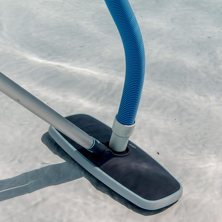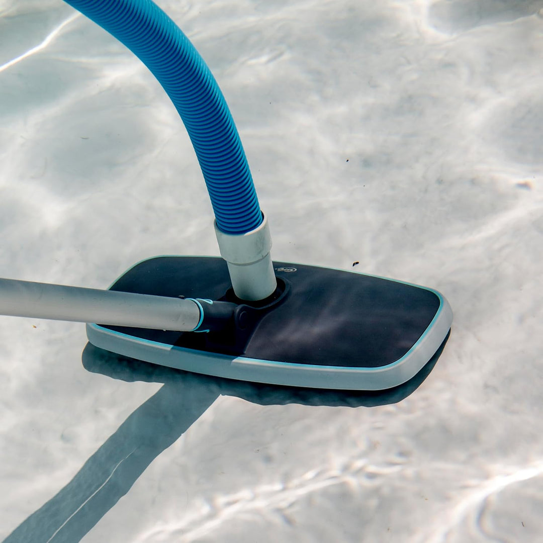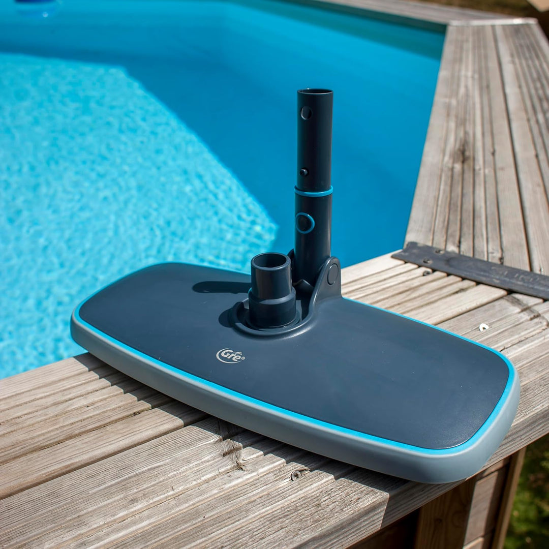- Rechteckiger Saugkopf für die Reinigung des Poolsbodens. Seine rechteckiger Form vereinfacht die Reinigung des Pools.