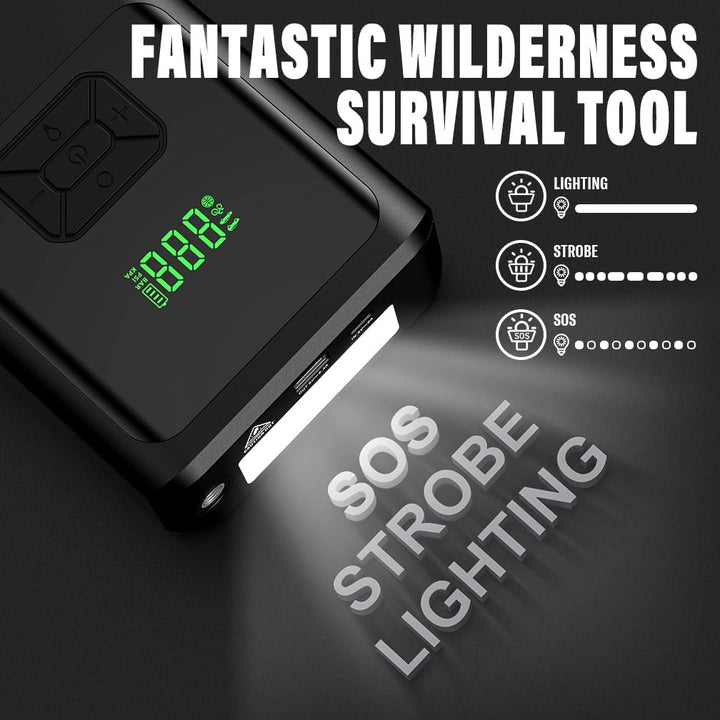 - 【LED-Taschenlampe und tragbare Powerbank】Unsere auto starthilfeist nicht nur eine Powerbank, sondern auch ein Lebensretter, der eine eingebaute superhelle LED-Taschenlampe hat (3 Modelle: Normal/Dauermodus, blinkendes Stroboskop und SOS-Modus). Über