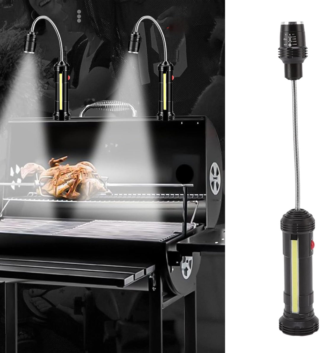 - Aluminiumlegierung: Das magnetische Grilllicht besteht aus einer hochwertigen Aluminiumlegierung und hat sich als wasserdicht und hitzebeständig erwiesen. Unterstützt Hauptlicht-Teleskopzoom.