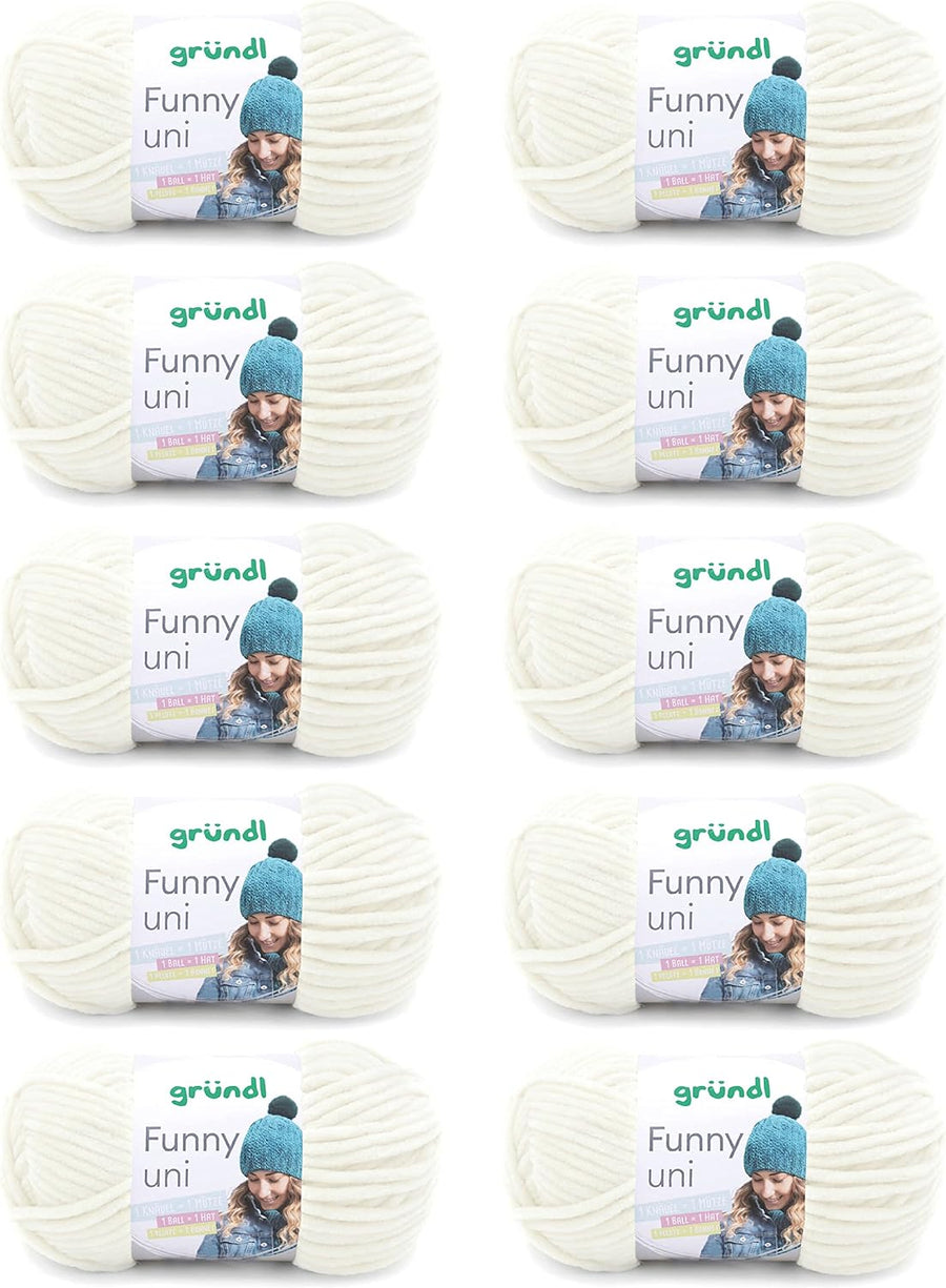 - LIEFERUMFANG & WEITERE EIGENSCHAFTEN: Gründl Funny uni Wolle, 10 x 100 g / 100 % Polyester / Maschenprobe: 11 M x 20 R = 10 x 10 cm / Materialverbrauch: Pullover (Gr. 38) = ca. 500 g
