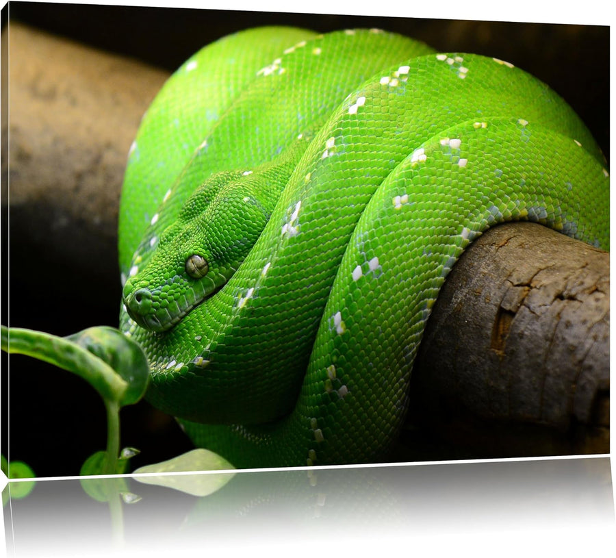 Grüne exotische Schlange, Format: 100x70 auf Leinwand, XXL riesige Bilder fertig gerahmt mit Keilrah