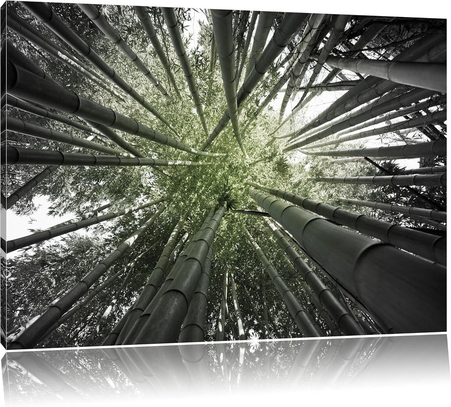 Grüner Bambus B&W Detail, Format: 100x70 auf Leinwand, XXL riesige Bilder fertig gerahmt mit Keilrah