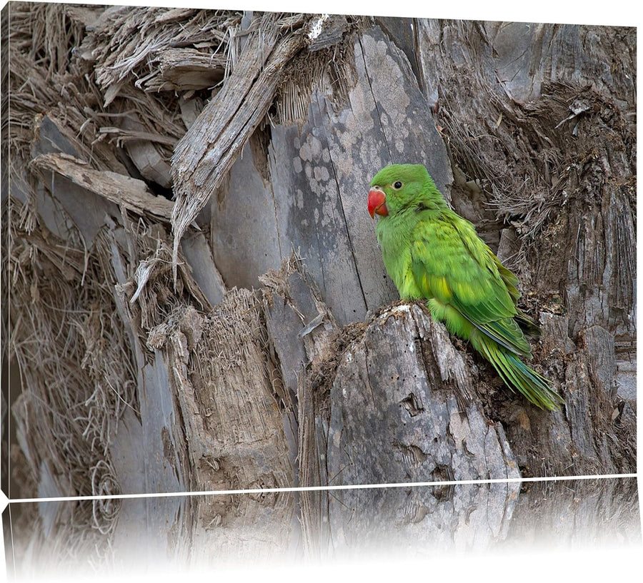grüner Papagei im Gehölz Leinwand, XXL riesige Bilder fertig gerahmt mit Keilrahmen, Kunstdruck auf