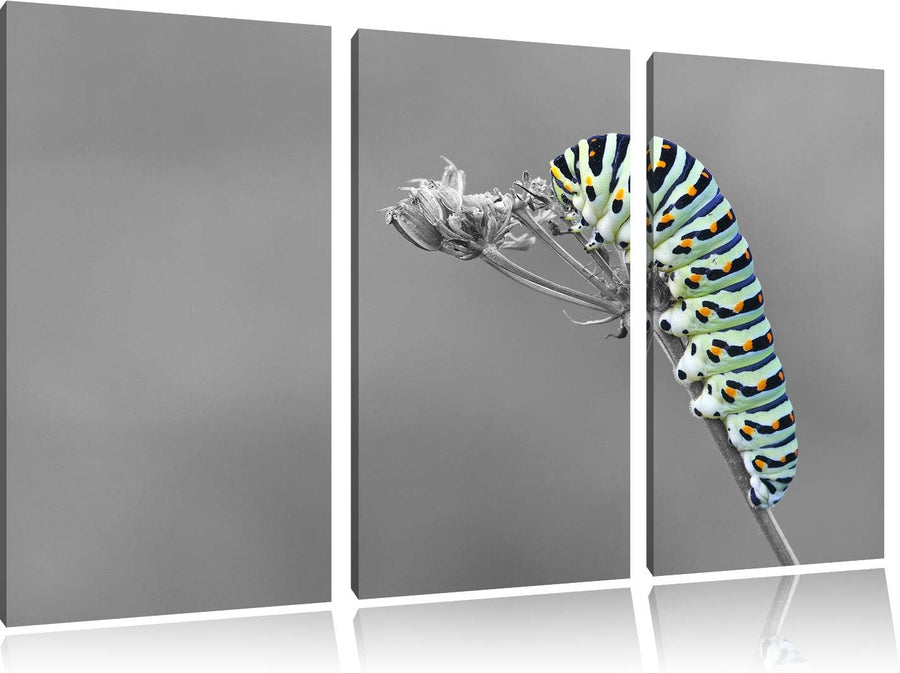 Grüne Raupe auf Ast Insekten Urwald Tiere schwarz/weiss 3-Teiler Leinwandbild 120x80 Bild auf Leinwa