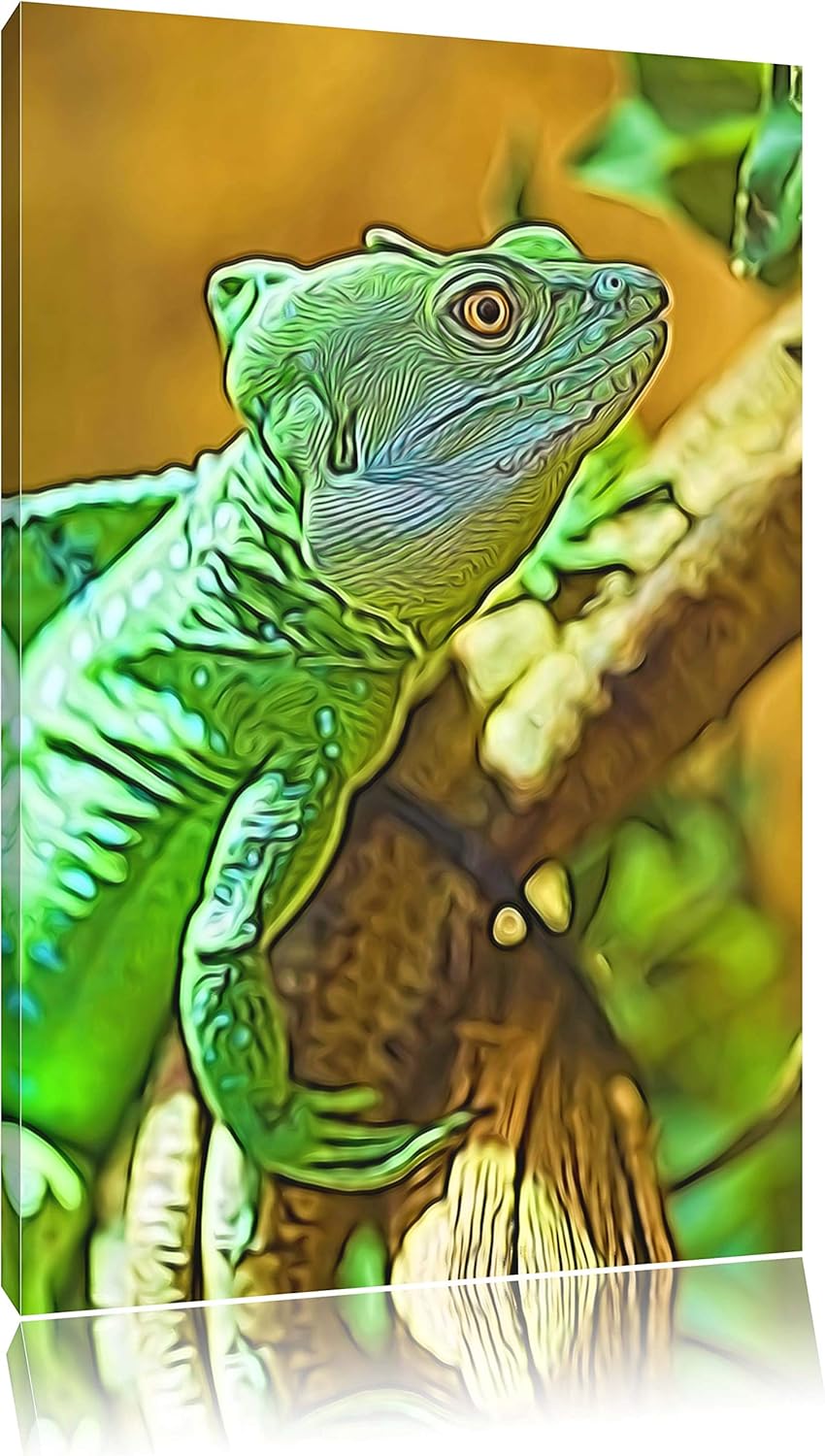 grünes Chamäleon Deluxe Format: 100x70 cm auf Leinwand, XXL riesige Bilder fertig gerahmt mit Keilra