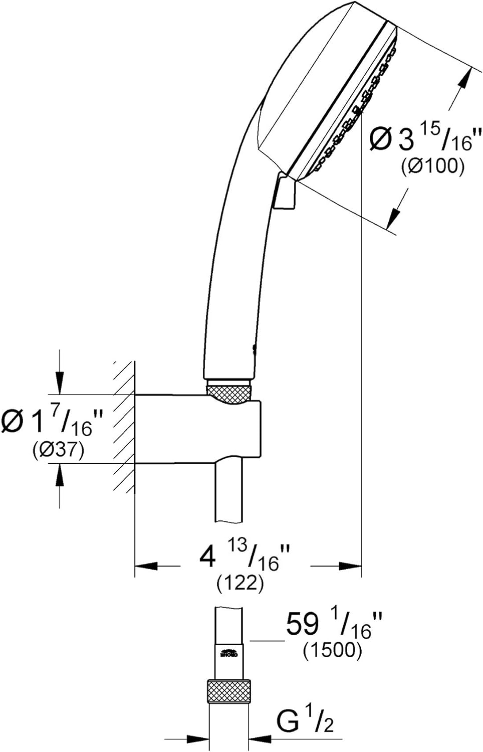 Grohe 27588002 Tempesta Cosmopolitan 100 Wandhalterset 3 Strahlarten, Chrom Wandhalterset 3 Strahlar