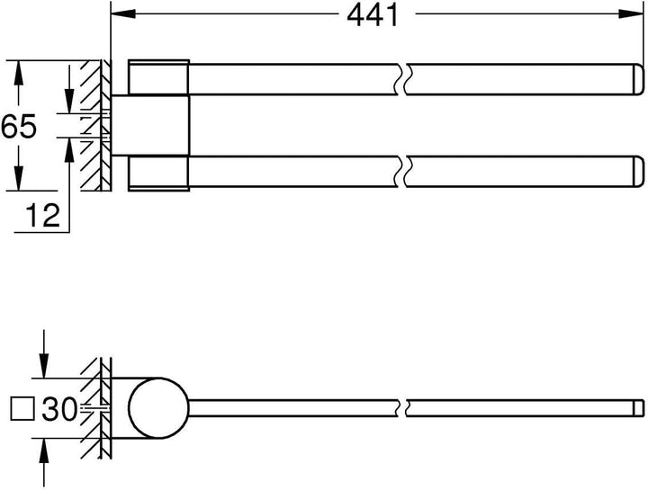 • Lieferumfang: GROHE Handtuchhalter, schwenkbar, Pflegehinweis, Montageset