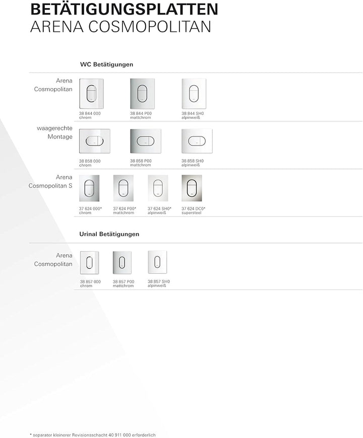 - Lieferumfang: Betätigungsplatte, Pflegehinweis