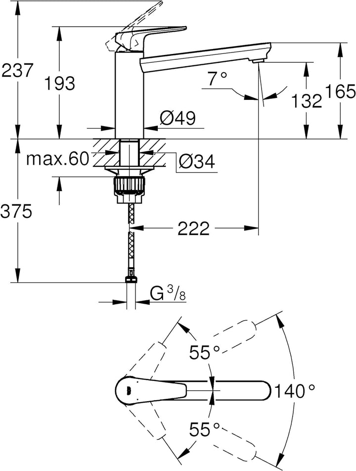 - Schwenkbereich 140°: Extra sanftes Schwenken ohne Anstossen