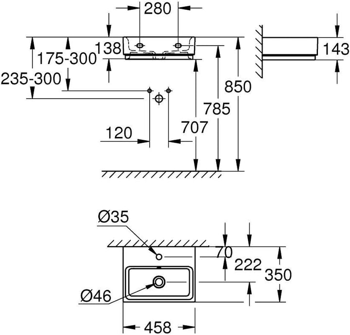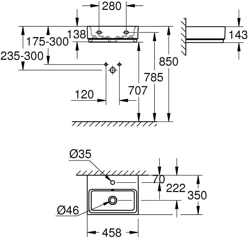 - Lieferumfang: Handwaschbecken 45 cm, Pflegehinweis, Montageanleitung