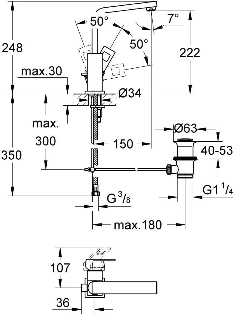 - Lieferumfang: Waschtischarmatur, Zugstange, Ablaufstopfen, Befestigungsmaterial, Bedienungsanleitung