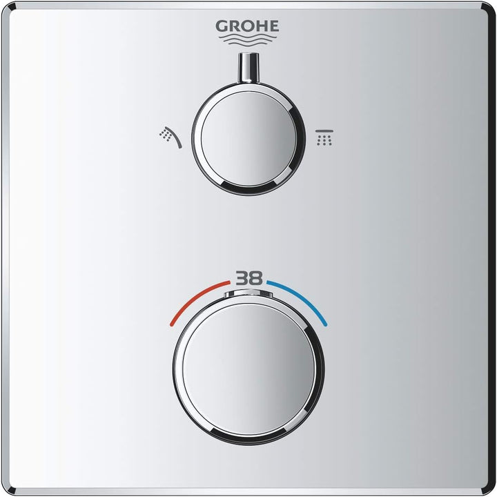 - GROHE SafeStop Plus Sicherheitssperre bei 38°C und zusätzlich optional einsetzbarer Temperaturendanschlag bei 43°C