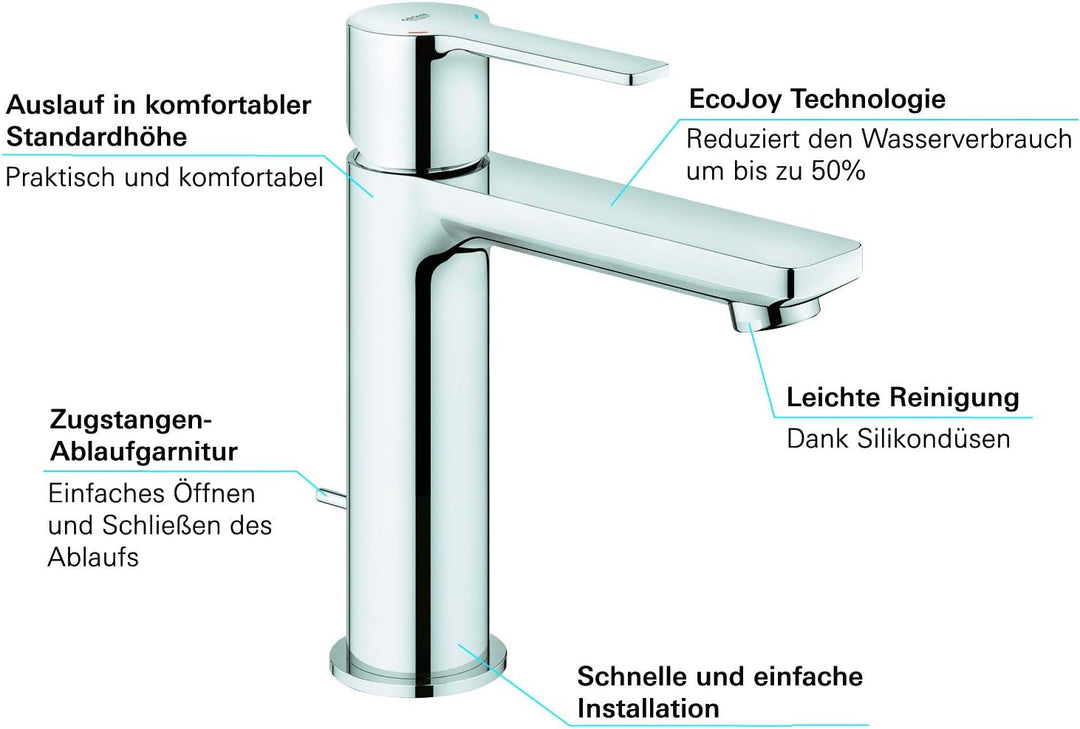 - Lieferumfang: Grohe Lineare Badarmatur - Waschtischarmatur, Waschtischarmatur, Zugstange, Ablaufstopfen, Befestigungsmaterial, Bedienungsanleitung