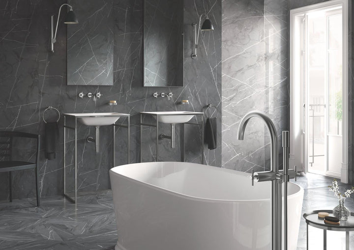 - Wandrosette aus Metall mit Grohe QuickFix mit verdeckter Rosetten- und Schaftabdichtung, verdeckte Befestigung, nachträglich ± 6° ausrichtbar