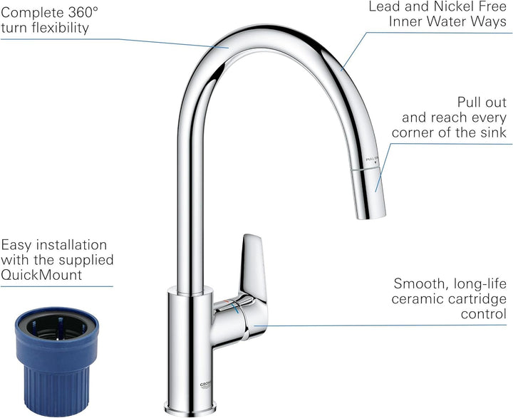 - Das Küchenspray für maximalen Komfort; spülen Sie Ihr Gemüse, machen Sie kurze Arbeit mit schmutzigem Geschirr und reinigen Sie es in jede Ecke Ihrer Küchenspüle. Der ausziehbare Sprühkopf bietet den maximalen Aktionsradius, bringt Komfort und