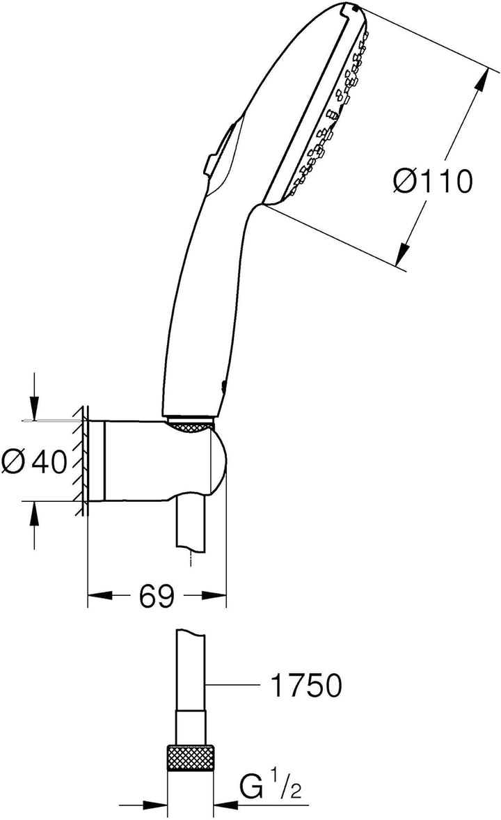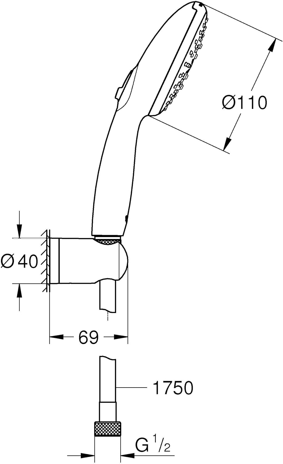 - In der Lieferung ist das GROHE Vitalio Start 110 - Wandhalterset (wassersparend, 3 Strahlarten, Brauseschlauch 1750mm, langlebig), rund, chrom, 26769001 und eine Bedienungsanleitung enthalten