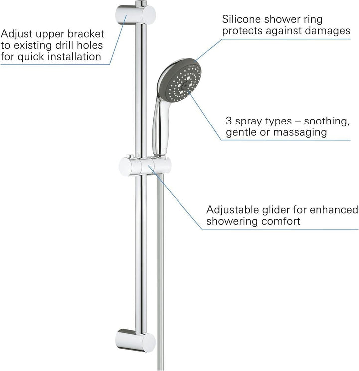 GROHE Vitalio Start 100 Brausenstangenset (3 Strahlarten, wassersparend, Antikalk-System), chrom, 26