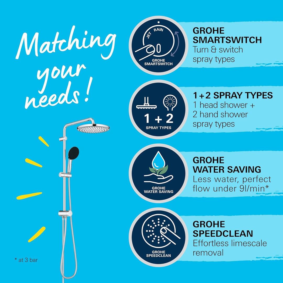 GROHE Vitalio Start 250 - Flex Duschsystem (horizontaler Durscharm 390mm,2 Strahlarten, Brauseschlau