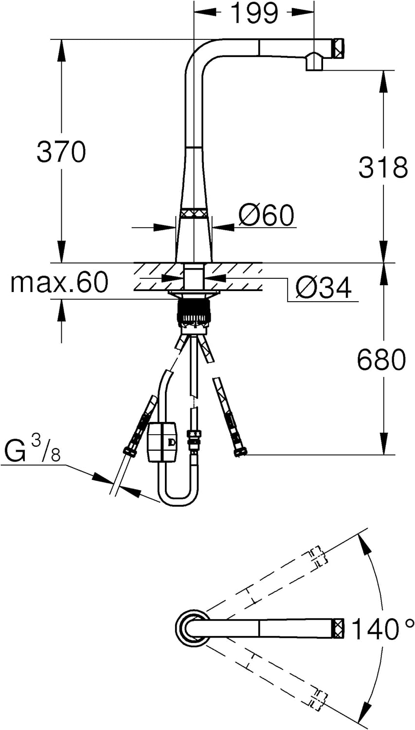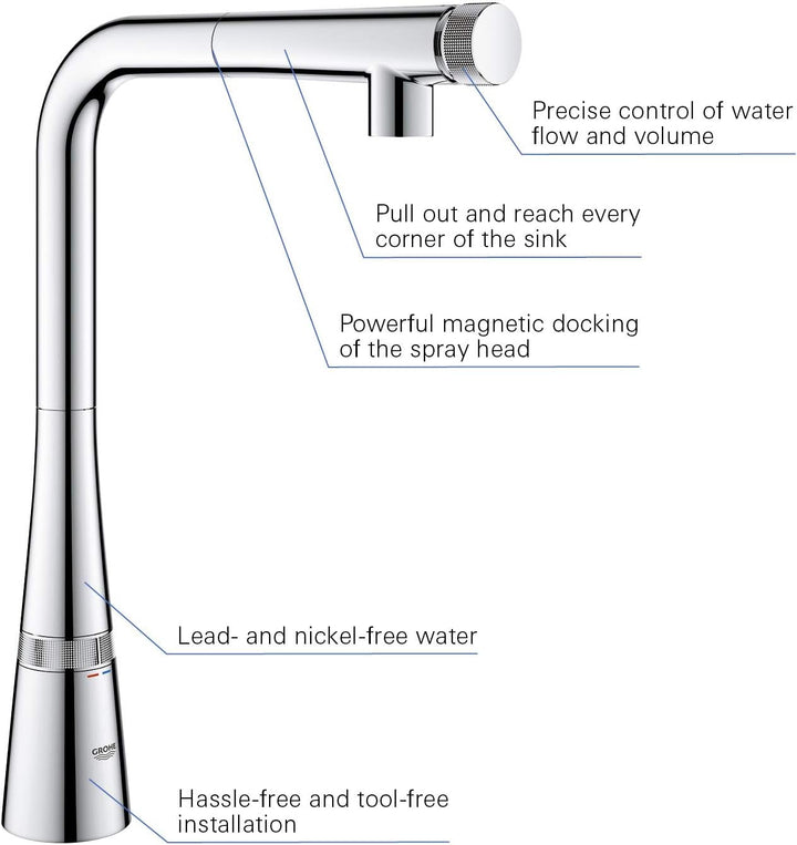 - Lieferumfang: Spültischbatterie mit SmartControl, Pflegeanleitung, Montageanleitung, Montagezubehör