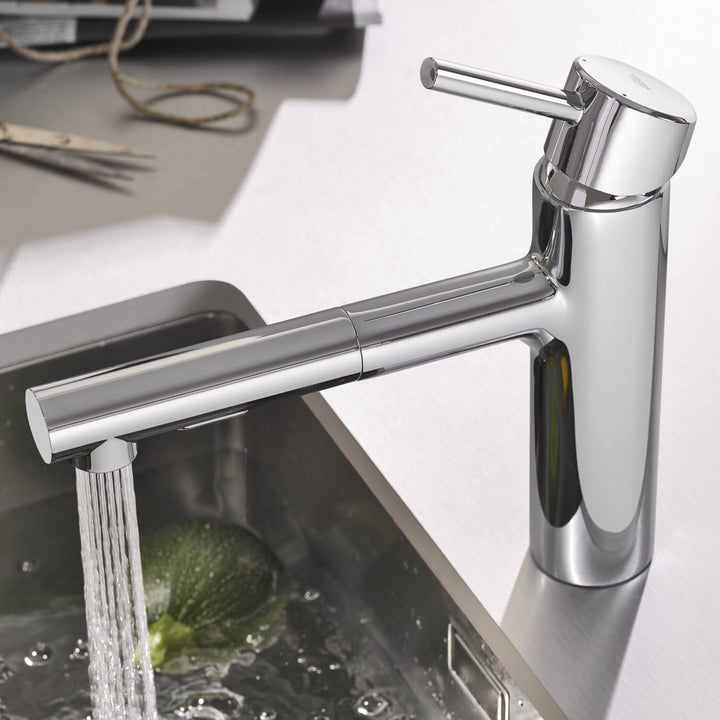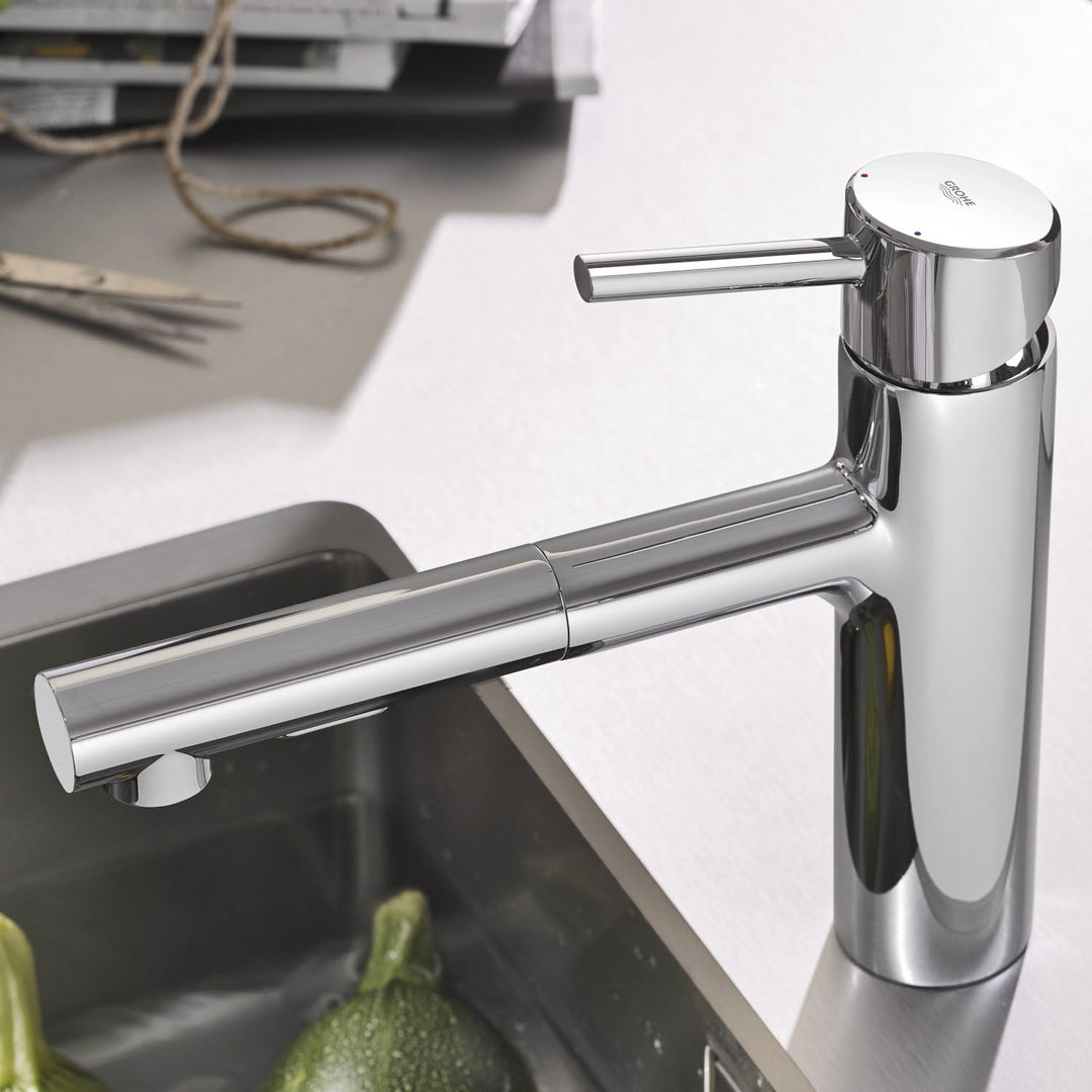 - HERAUSZIEHBARER AUSLAUF: Gemüse abwaschen, die Spüle reinigen oder Töpfe befüllen: Mit der herausziehbaren Komfort-Spülbrause erleben Sie maximale Bewegungsfreiheit in der Küche. Wechseln Sie mit einem Knopfdruck zwischen feinperligem Spülstrahl