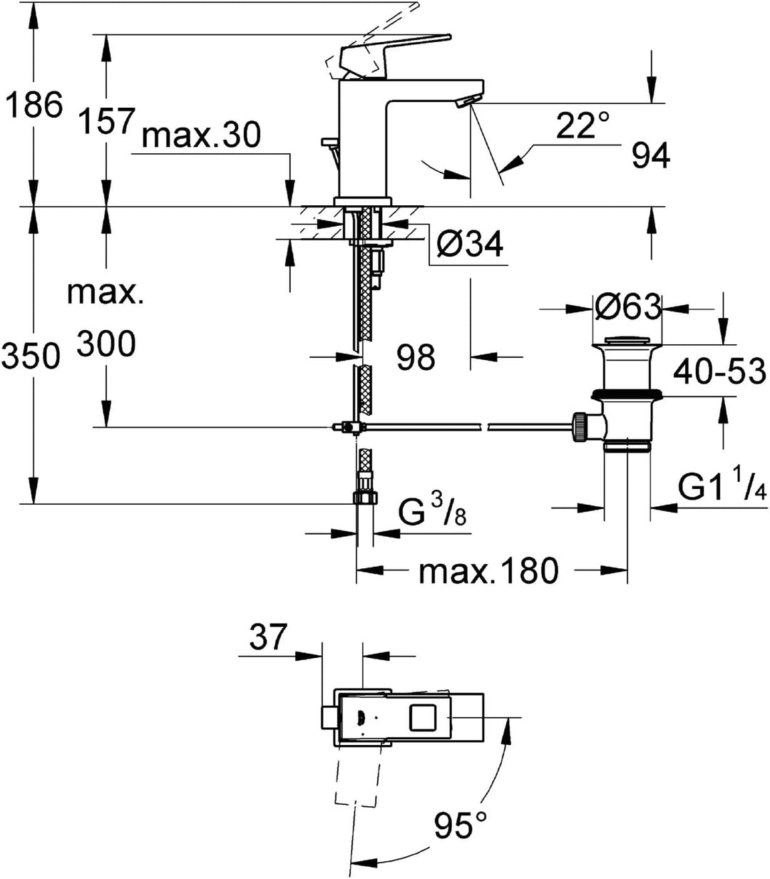 GROHE Eurocube Einhand-Waschtischbatterie, mit Energieparfunktion 2339000E, Silber Small Ablaufgarni
