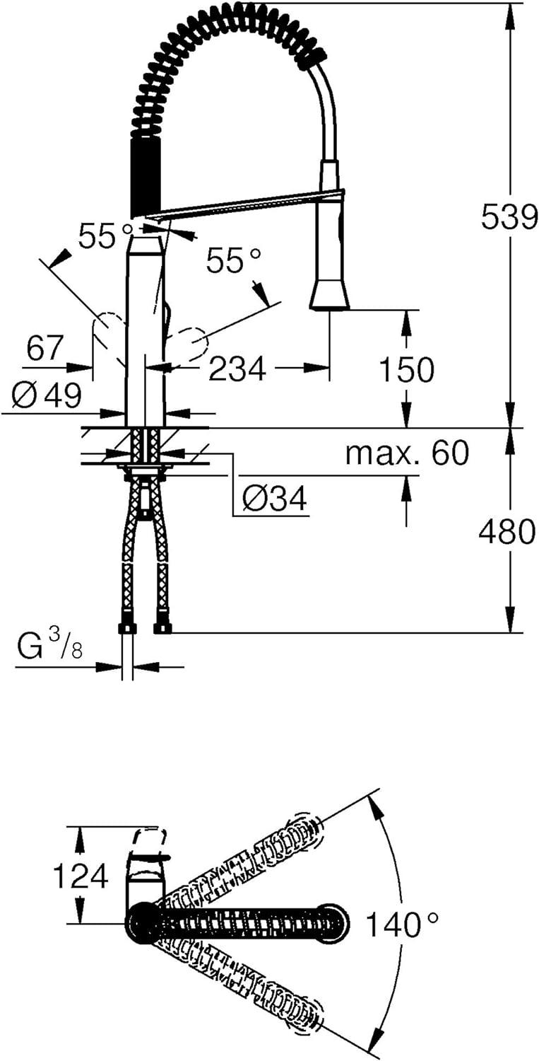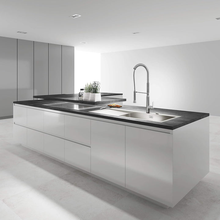 - Drehbare Profibrause: Töpfe befüllen, die Spüle oder gleich die gesamte Arbeitsfläche reinigen: Der hohe, schwenkbare Auslauf hilft Ihnen, schnell und effizient zu arbeiten