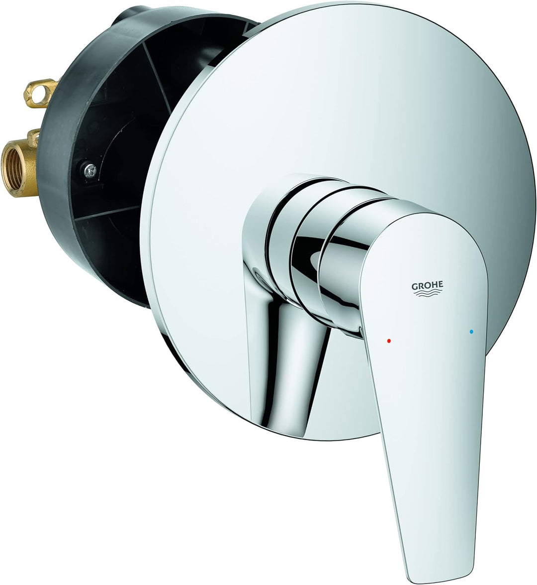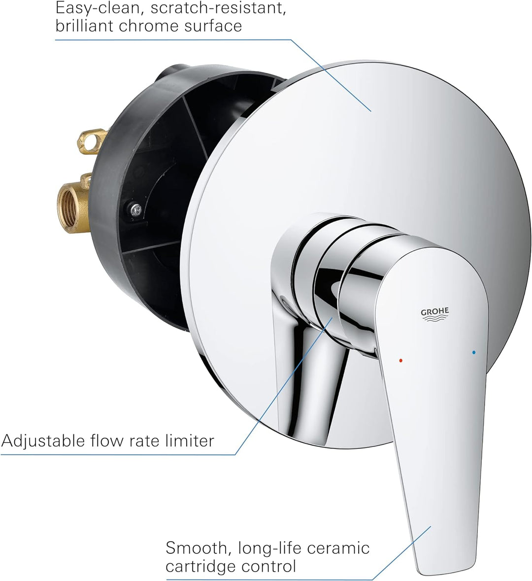 • GROHE Start Edge single-lever shower mixer trim set. Wall-mounted, concealed installation. Water-saving adjustable flow rate limiter. Chrome finish. 24202001