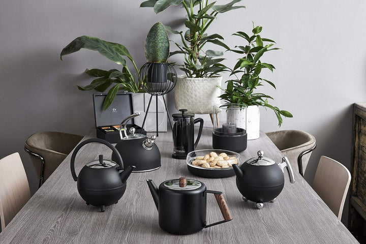- Die grosse runde schwarze 1.2 L Teekanne aus Edelstahl ist doppelwandig und isoliert Tee optimal