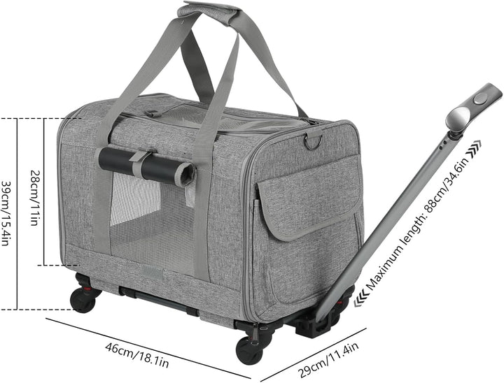 - 【Viel Stauraum】: Der Hunde-/Katzentransporter mit Rädern hat eine erweiterte Grösse von 46 x 29 x 39, was sehr gross ist und problemlos Katzen oder Hunde mit einem Gewicht von 30 Pfund aufnehmen kann, sodass Haustiere Platz zum Ausstrecken haben.