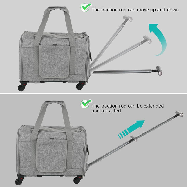 - 【Einfach zu verstauen】: Dieser katzentransportbox mit Rädern verfügt über Riemenscheiben, eine abnehmbare Basis und eine Aluminium-Zugstange, die das Zusammenklappen zum Transport und Tragen erleichtert, was den Nutzungskomfort und die hohe